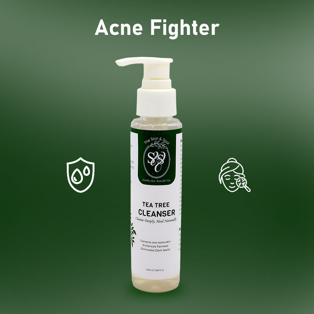 Our Tea Tree Cleanser is a gentle yet effective facial cleanser infused with the natural antibacterial and soothing properties of tea tree oil. Designed to deep-cleanse the skin, it helps remove excess oil, dirt, and impurities while fighting acne-causing bacteria. Ideal for oily and acne-prone skin, this cleanser purifies the skin without stripping it of essential moisture, leaving it feeling fresh, clear and balanced. Perfect for daily use, it helps maintain a healthy complexion and prevents breakouts.